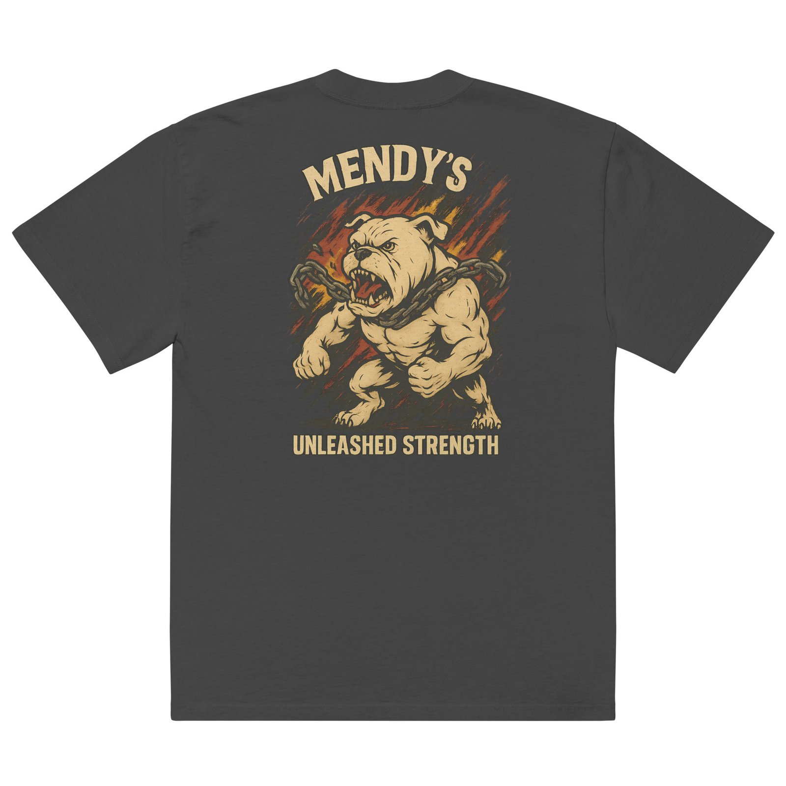 Channel raw power with the Unleashed Strength Oversized Tee from Mendy’s Gym. Featuring a bold, streetwear-inspired bulldog graphic and rugged chain details, this heavyweight shirt is built for comfort and presence—whether you’re lifting or repping hard outside the gym. With a relaxed, drop-shoulder fit and premium cotton construction, it’s the perfect mix of durability and attitude.